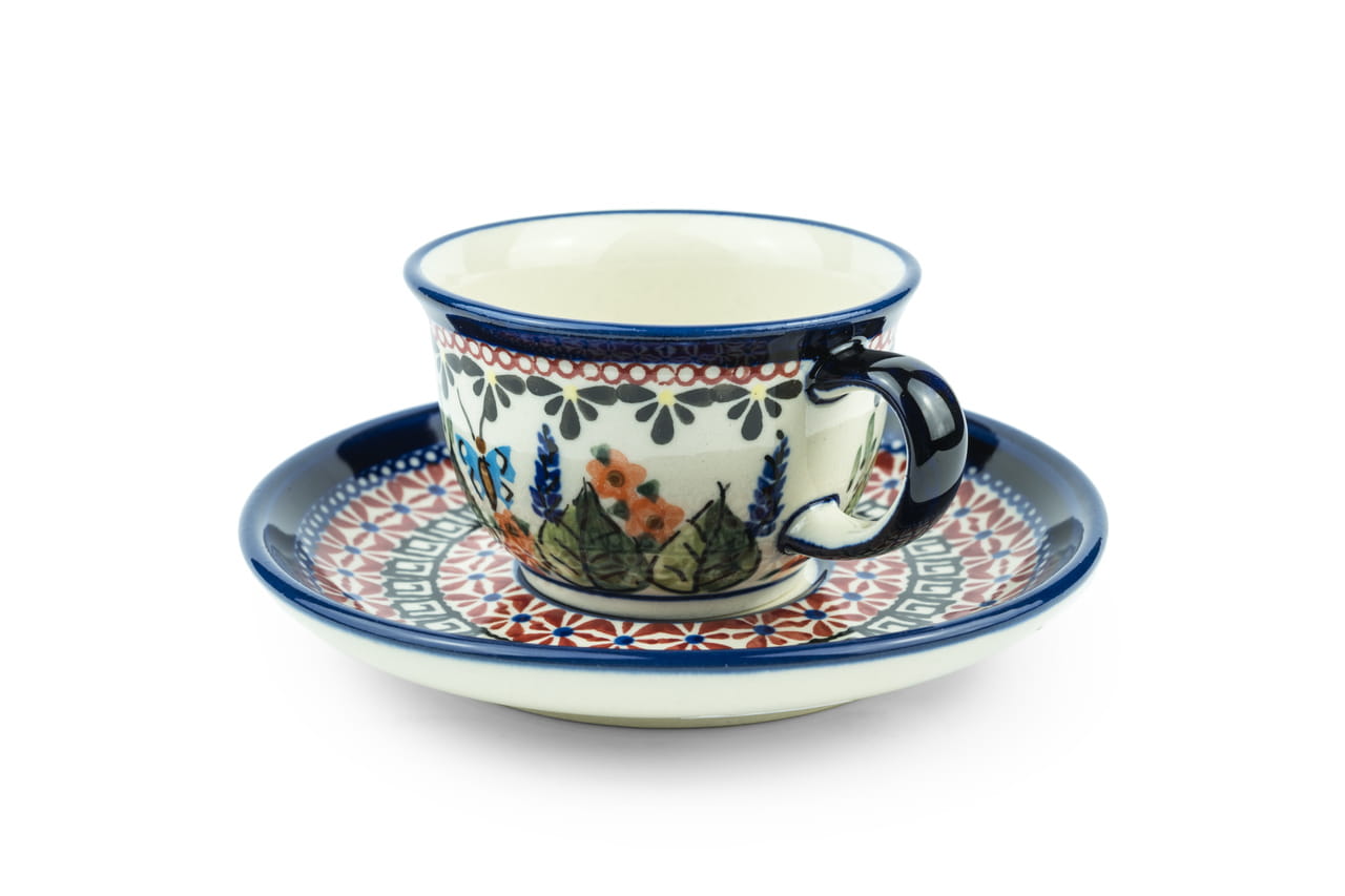 Naczynie jest wzbogacone o bolesławiecki, tradycyjny wzór przedstawiający naturę. Zarówno kolorystyka, jak i technika wykonania jest z należytą precyzją i dbałością o każdy szczegół. W związku z tym, że każda ozdoba wykonywana jest własnoręcznie, filiżanki mogą nieco się od siebie różnić. Wysoka temperatura wypalania jest gwarancją długiego zachowania wszystkich atutów. Mała filiżanka ze spodkiem to nie tylko umilacz chwil, lecz również niezwykła ozdoba każdego domu z duszą.