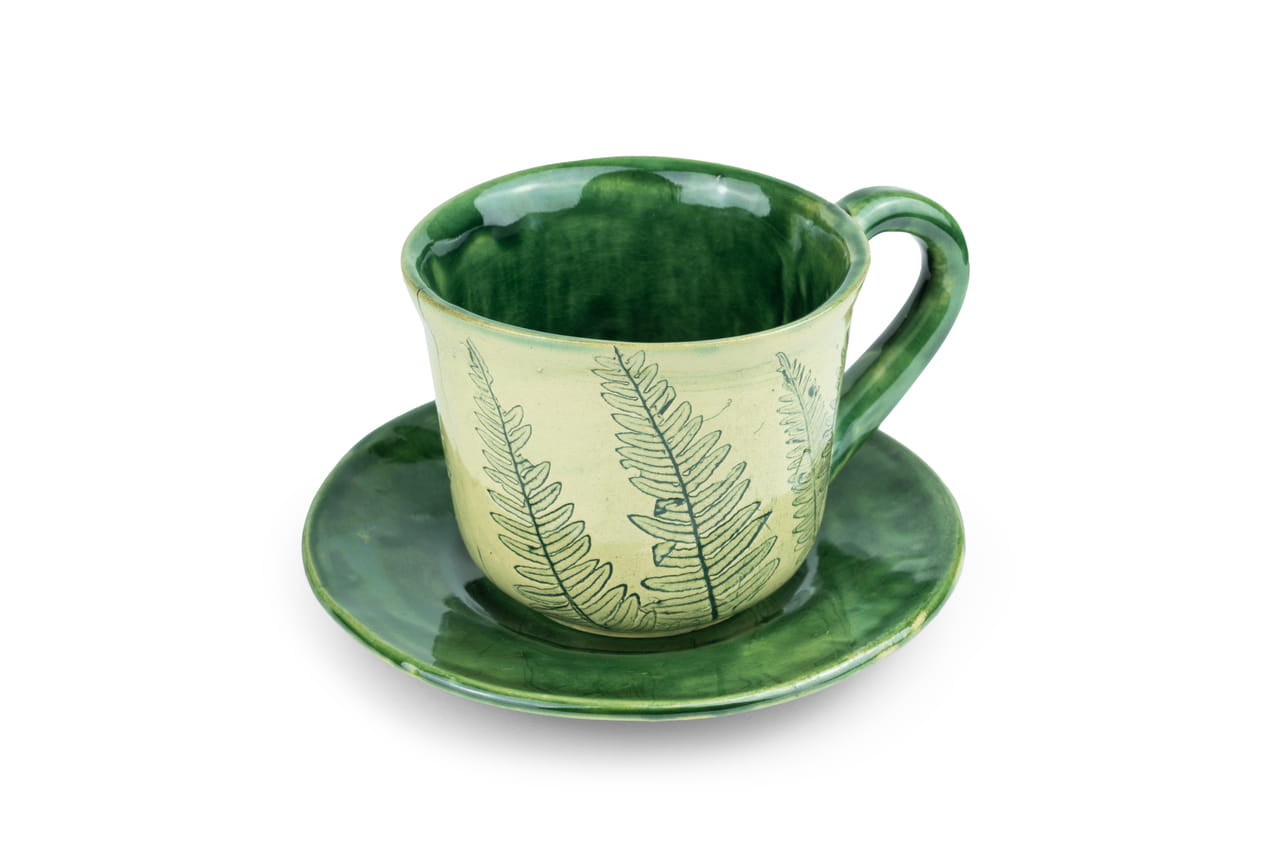 Filiżanka ze spodkiem handmade z ceramiki Zielona Uczta (200 ml)